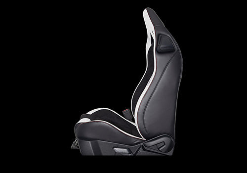 - This seat is equipped with an integrated headrest, seat belt pass-through openings and enhanced shoulder, back and thigh area bolsters