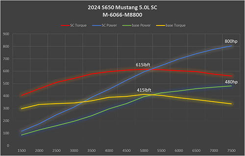 Ford Performance Parts is pleased to announce our supercharger kit for the 2024 5.0L Mustang GT and Dark Horse. Developed by Whipple Superchargers in partnership with Ford Performance Engineering, this kit delivers on performance. The Ford Performance package delivers 810 HP @ 7,500 RPM and 615 lb.-ft. of torque @ 4,800 RPM for active exhaust equipped Mustangs. (10 HP less for non-active exhaust).