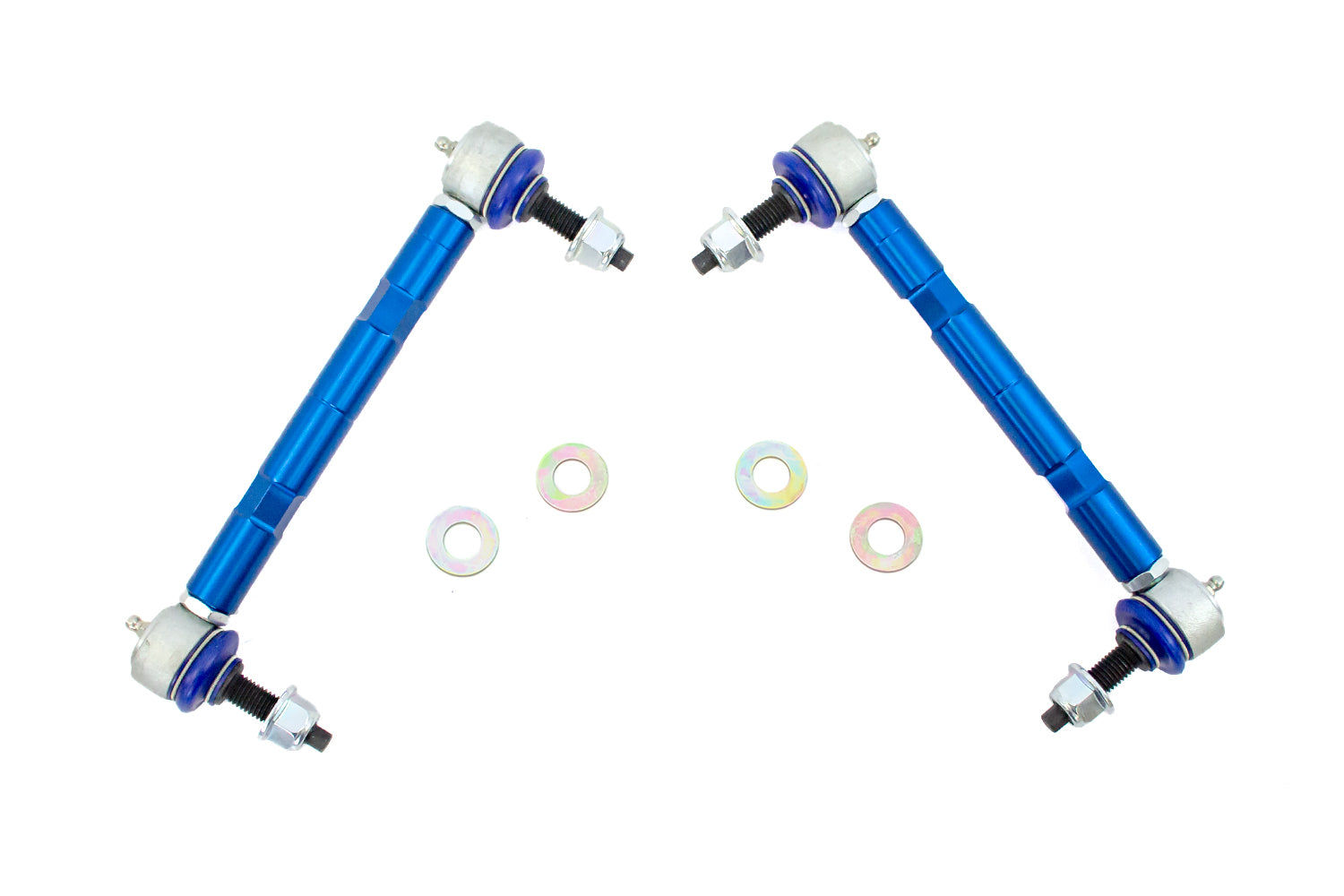 Steeda's adjustable front swaybar end links make a great upgrade for the stock sway bar and are the perfect dual-purpose street/open track piece.