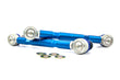 The adjustment body is corrosion-resistant and constructed from lightweight aerospace-grade aluminum. End links feature case-hardened ball studs with significantly increased swing area compared to spherical rod ends. Includes locking hardware for installation.