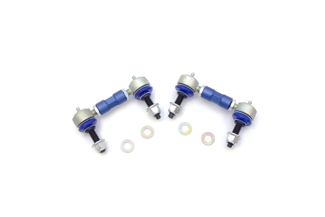 For competition use, our double adjustable design makes it adjustable on the car. It allows both retaining proper swaybar geometry on lowered cars and adjusting swaybar preload for suspension fine-tuning.