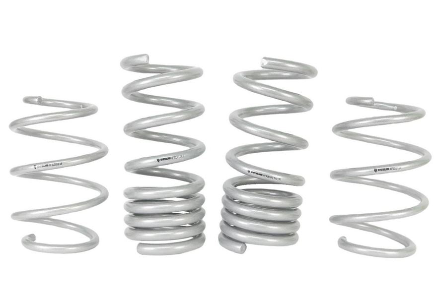 Whiteline Springs deliver improved vehicle performance whilst maintaining safety and ride quality characteristics. This kit contains 3.5kg/mm (196lb/in) front rated springs that provide a 25mm drop while the 11.8kg/mm (661lb/in) rated rears deliver a desirable 25mm to the vehicle. By lowering the vehicles centre of gravity, the unique and progressive rate coil design not only improve performance but enhance overall appearance. Developed and manufactured in Europe from the highest quality materials, coating and to the finest tolerances guaranteeing exact fitment. Whiteline Springs are engineered for optimal balance with OEM and aftermarket shocks. For total grip activation match with Whiteline Sway Bar and Essentials kit for unrivalled handling and optimal vehicle performance.
